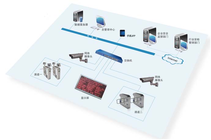 硬件包括:三輥閘(翼閘或擺閘)、考勤機、LED屏、視頻監(jiān)控攝像頭、電視、手機等硬件全部連接互聯(lián)網(wǎng)。
