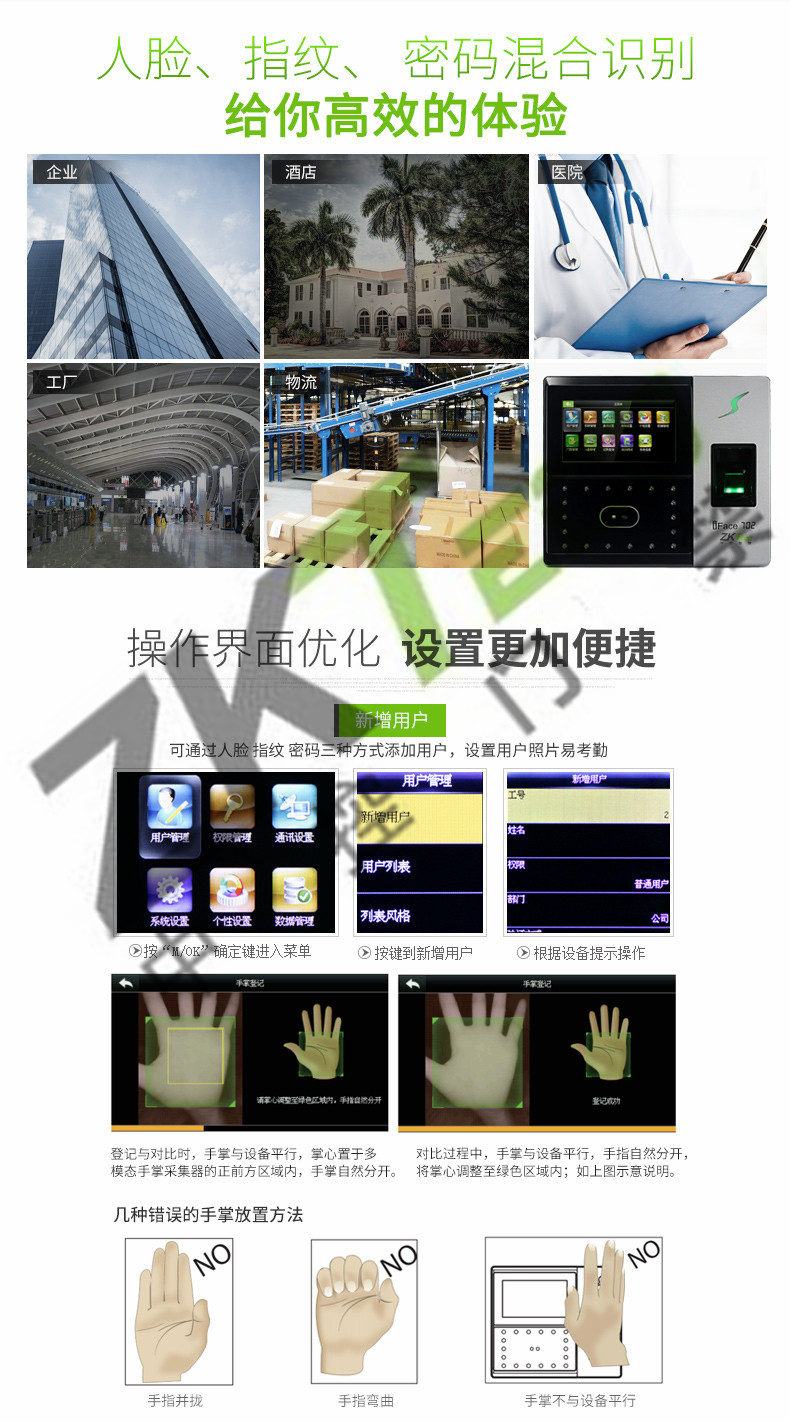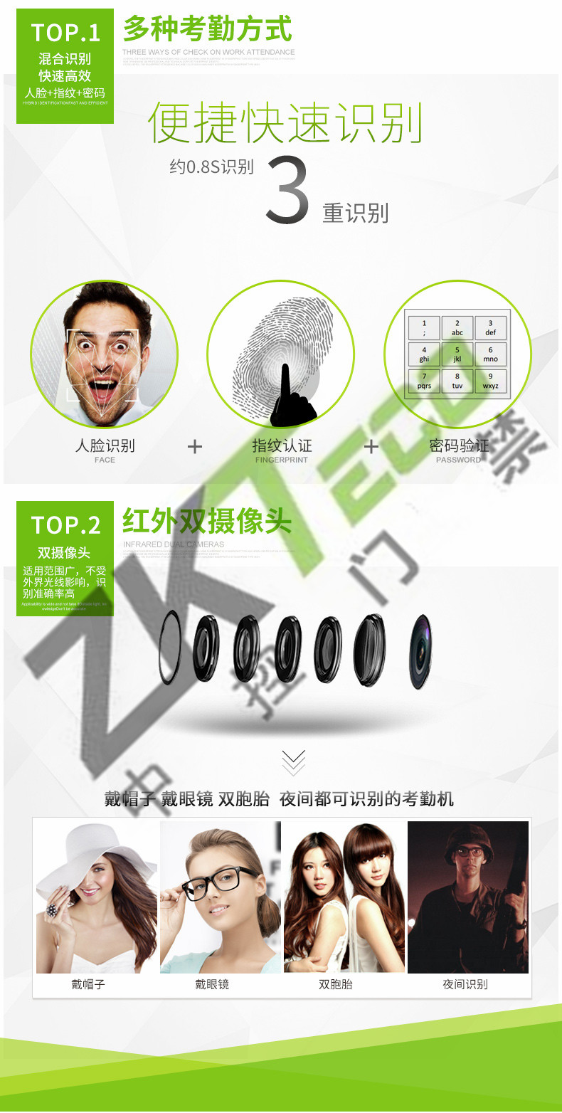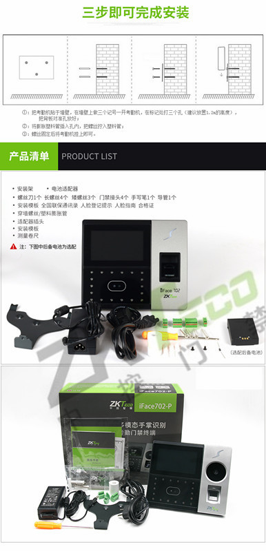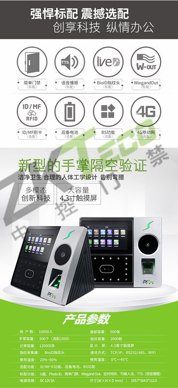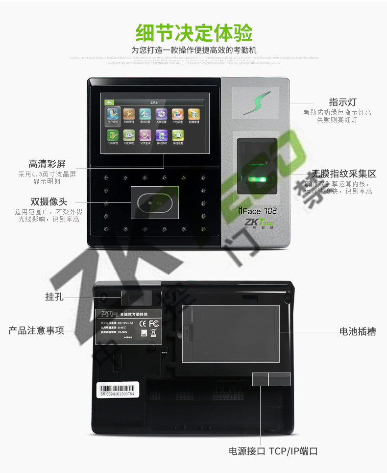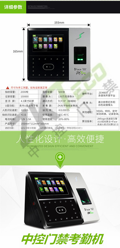 中控面部考勤機(jī)iface702P 人臉指紋識別門禁