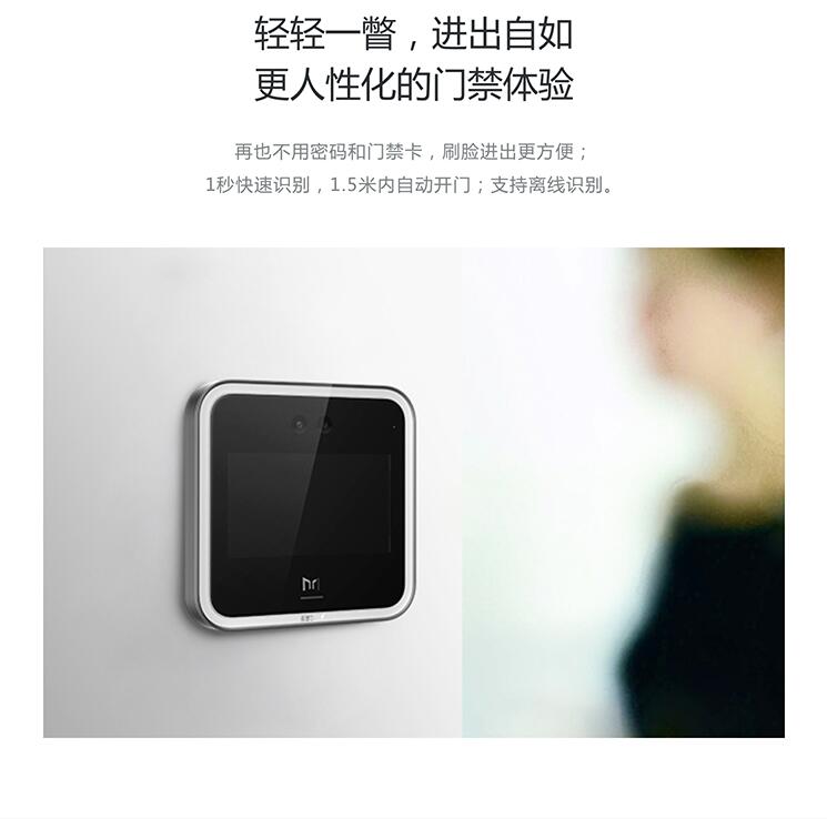 魔點(diǎn)D2門禁機(jī)造型簡(jiǎn)單,體積小巧,尺寸為150*150*17.8mm,整機(jī)重量為355.5g,搭載了兩個(gè)3*3微米、1/2.7英寸傳感器的大攝像頭和一塊5吋的屏幕,結(jié)合獨(dú)家的人臉識(shí)別算法技術(shù),不但可以多角度準(zhǔn)確進(jìn)行人臉識(shí)別,還可以顯示刷臉開(kāi)門打卡是所需的必要信息。