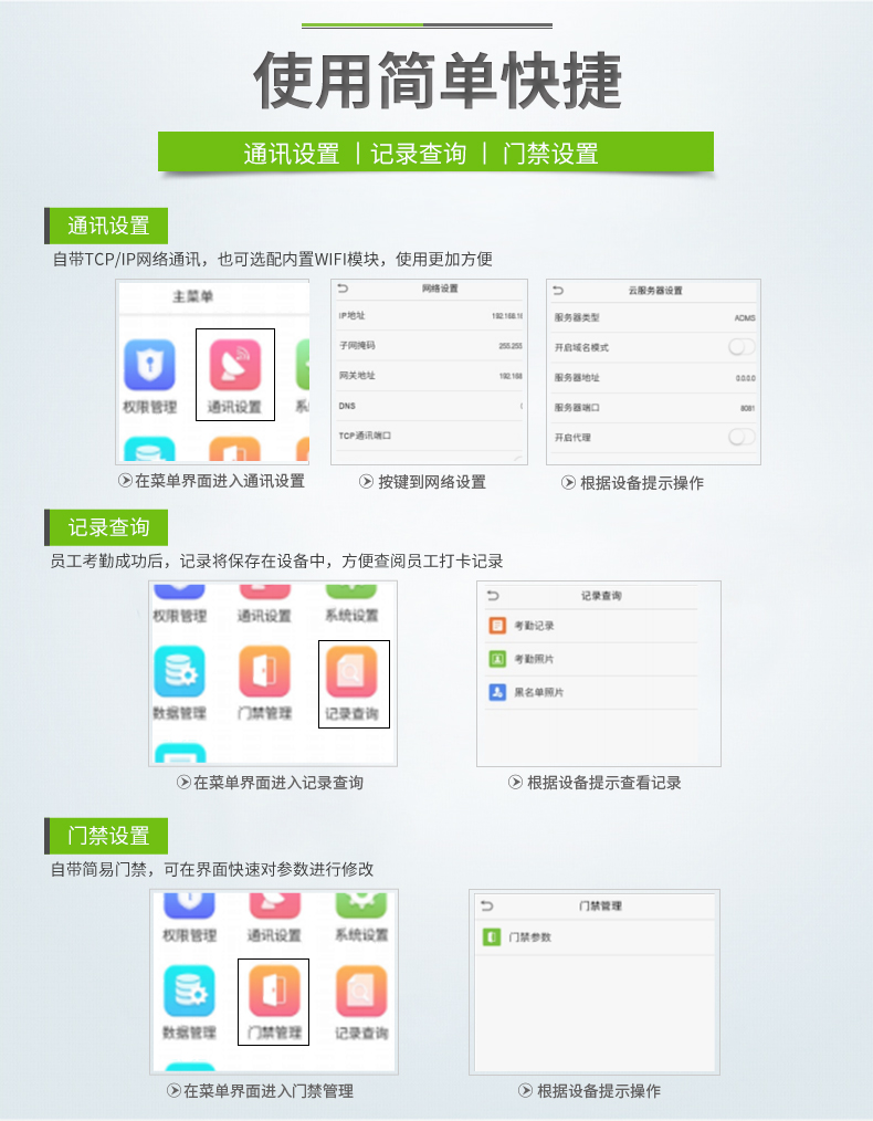 基礎(chǔ)功能 記錄查詢、Photo ID、門磁、報(bào)警、出門開關(guān)